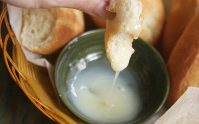 - Bánh Mì Chấm Sữa (Banh Mi with condensed milk): this is a classic and very traditional way to Banh Mi. With just a plain taste of Bánh Mì embedded in sweet flavor creamy milk, both children and adults can fill their hunger quickly without spending too much money.